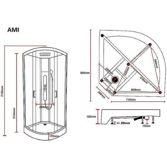 Высота поддона: 140 мм.