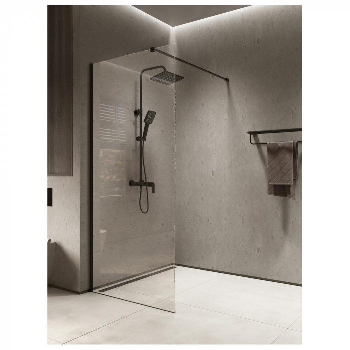 Для любителей контраста и современных решений – матовый черный профиль в сочетании с прозрачным стеклом создаёт стильный и лаконичный интерьер. Smart Clean предотвращает образование налёта и упрощает уход. Надёжность алюминиевого профиля и простая установка делают эту модель функциональной и долговечной.