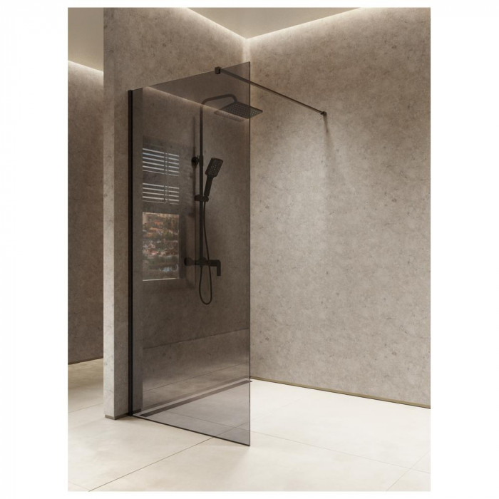 Современное душевое ограждение Walk-In, которое сочетает элегантность матовой черной рамки и стильное тонированное стекло. Удобство и комфорт гарантированы благодаря технологии Smart Clean – одностороннее покрытие для легкого ухода. Изготовлено из прочного алюминия, стойкого к коррозии. Идеальный выбор для современных ванных комнат.