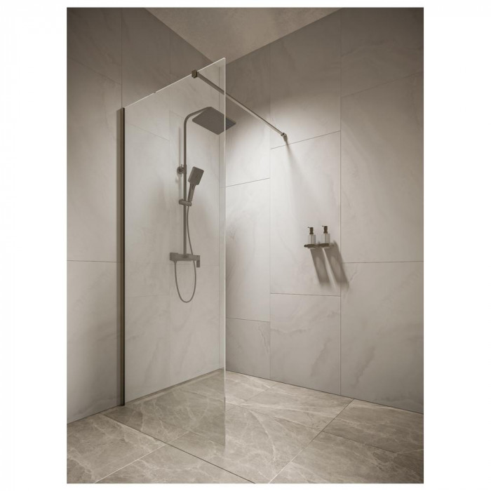 Современный и стильный вариант душевого ограждения Walk-In с матовой рамкой в цвете вороненой стали. Тонированное стекло обеспечивает приватность, а покрытие Smart Clean делает уход быстрым и легким. Прочный алюминиевый профиль гарантирует надежность.