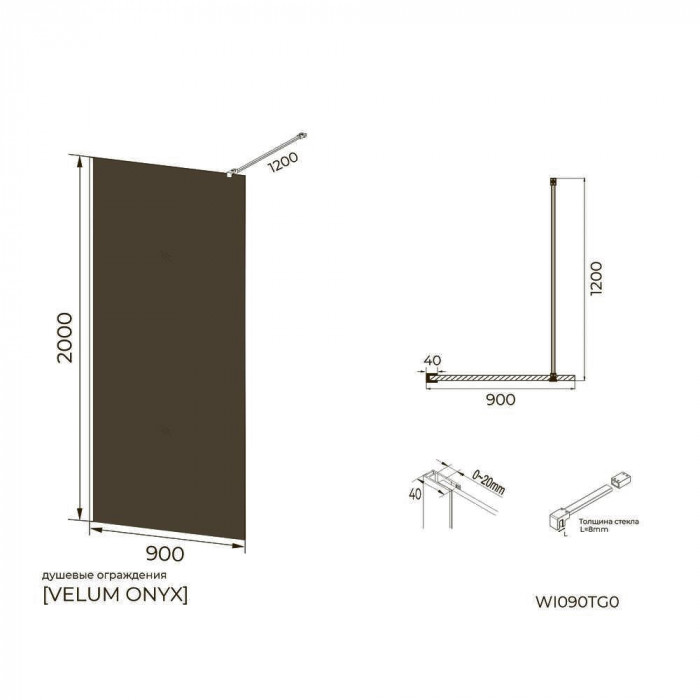 Душевая перегородка Knotlor WI090TG0GM 90х200 оружейная сталь Душевая перегородка Knotlor WI090TG0GM 90х200, оружейная сталь.