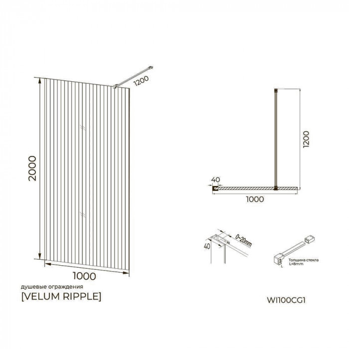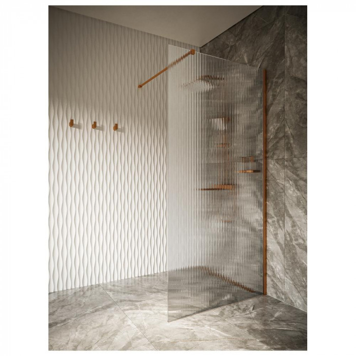 Элегантное душевое ограждение шириной 100 см с бронзовым профилем и ребристым стеклом толщиной 8 мм — идеальное сочетание стиля и функциональности. Оно не только защищает от брызг, но и добавляет в ванную комнату теплый, премиальный акцент.