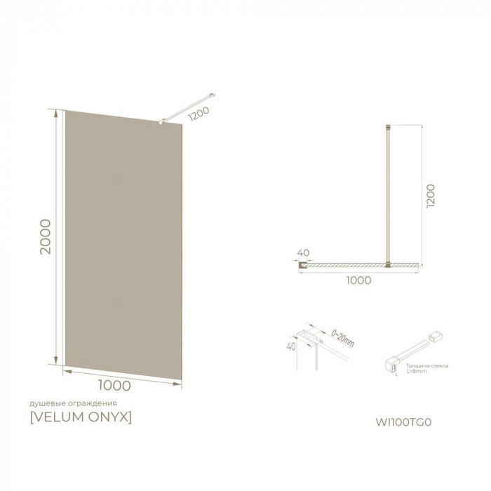 Душевая перегородка Knotlor WI100TG0BL 100х200 черный Душевая перегородка Knotlor WI100TG0BL 100х200, черный.