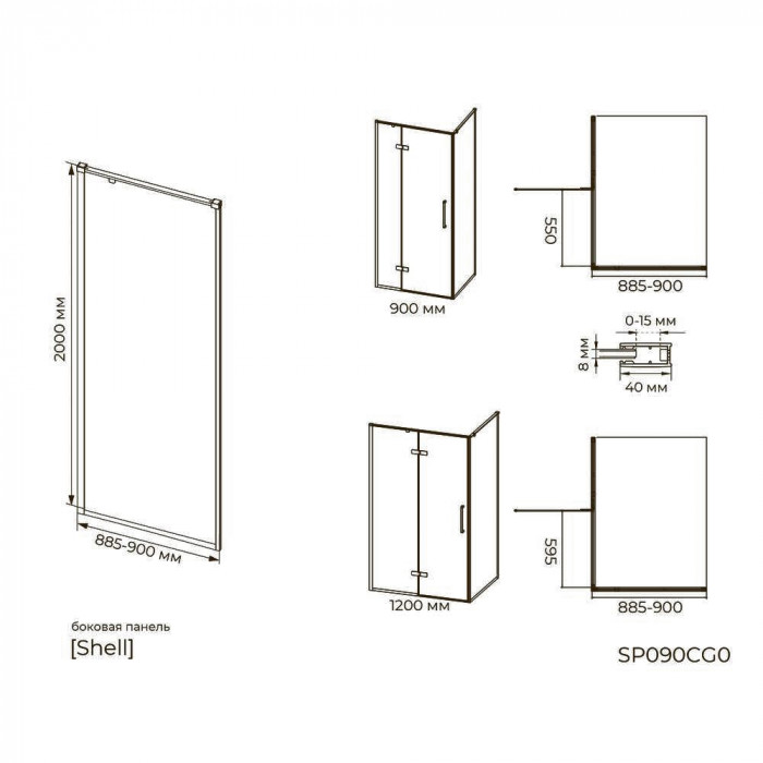 Душевое ограждение Knotlor SP090CG0RB 90х200 бронза Душевое ограждение Knotlor SP090CG0RB 90х200, бронза.