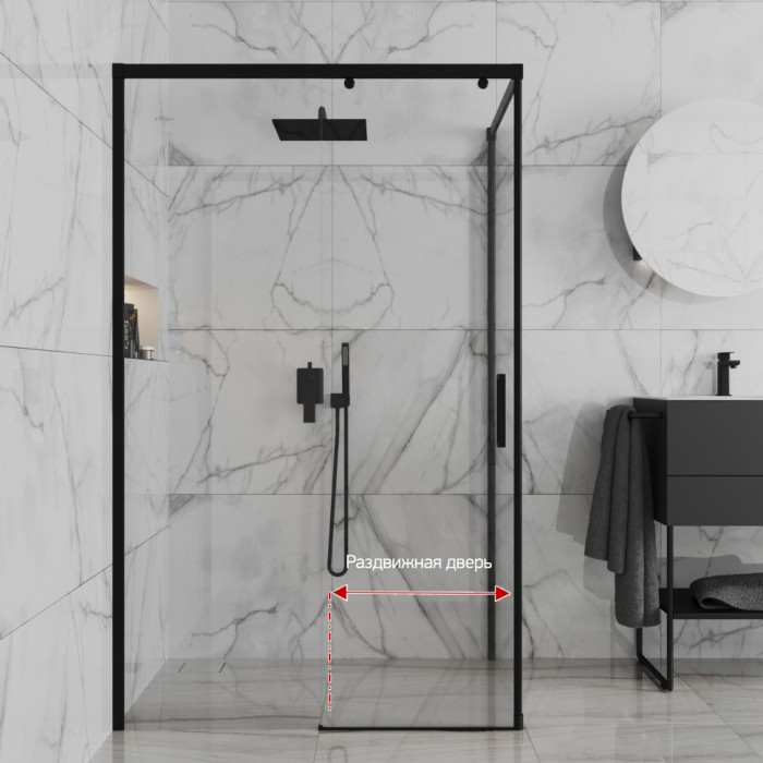 Душевое ограждение 120х80 см PAINI Dax, прямоугольное, раздвижное, универсальное, черный (YO) 84YO12080