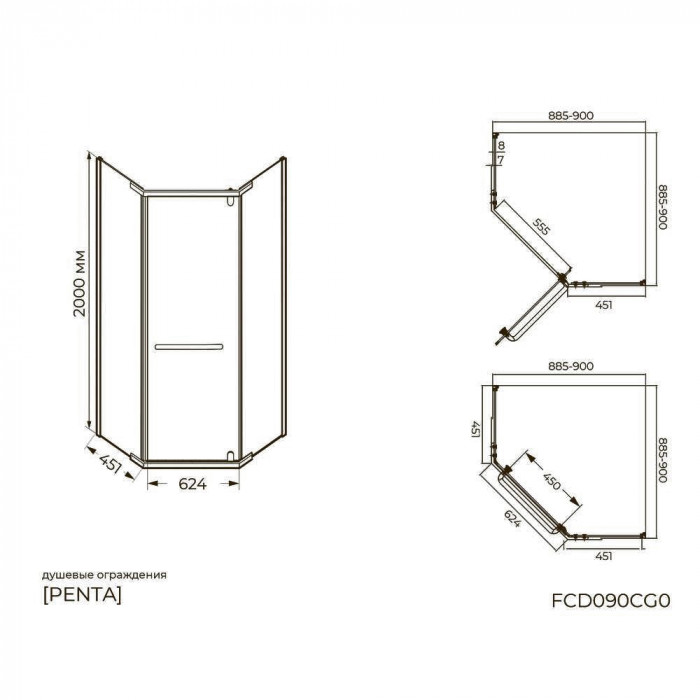 Душевой уголок Knotlor FCD090CG0GM 5-тиугольный 90х90х200 оружейная сталь Душевой уголок Knotlor FCD090CG0GM 5-тиугольный 90х90х200, оружейная сталь. Пятиугольное ограждение 90×200×90 см с профилем цвета вороненой стали и стеклом 8 мм. Придаёт ванной индустриальный современный стиль, сочетая практичность и эстетику. Китай 5 лет 7930139834654