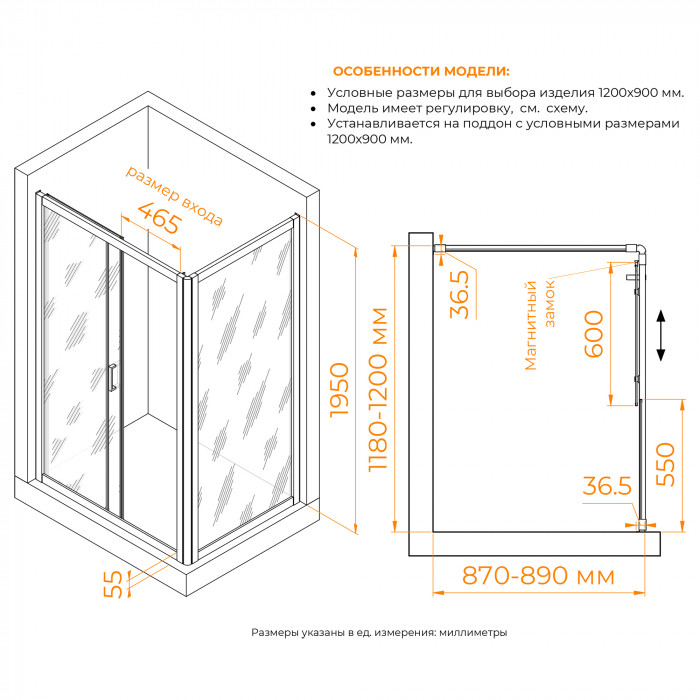 Душевой уголок RGW PA-045 1200x900 350804529-21 хром 3 года Россия / Германия Матовое-Сатинат 6мм Размеры с диапазоном регулировок (1180-1200)x(870-890) 1 класс герметичности Раздвижные Универсальная установка Easy Clean Металлическая Анодированный алюминий ALUSTRONG MAX Прямоугольный