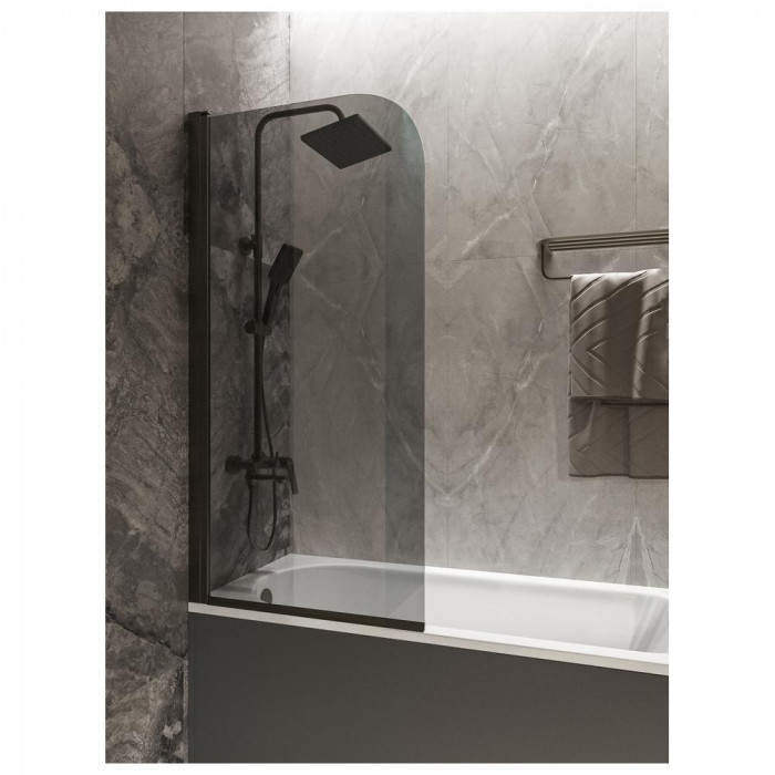 Шторка с тонированным стеклом и профилем вороненой стали, которая добавляет стиль и современность вашей ванной. Защитное гидрофобное покрытие Smart Clean облегчает уход, а прочный алюминиевый профиль гарантирует долговечность.