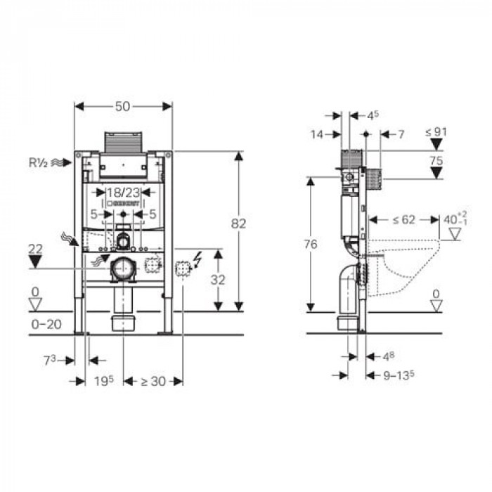 Инсталляция для подвесного унитаза Geberit Omega 12 111.003.00.2 размер 82 см