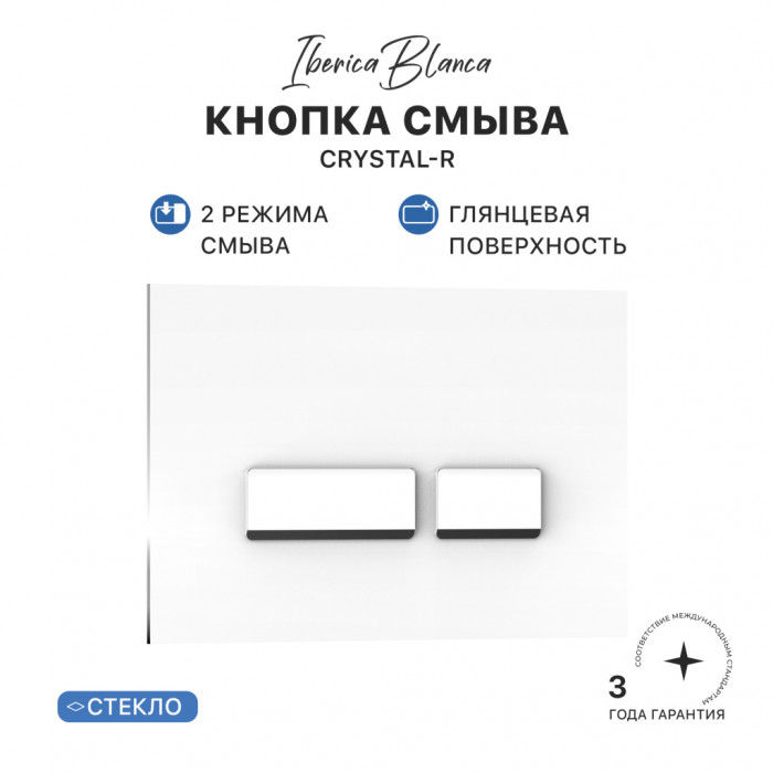 Кнопка смыва IBERICA BLANCA CRYSTAL-R стекло, белый глянцевый (IB.B022.001.00) IBERICA BLANCA IB.B022.001.00 3 года Испания