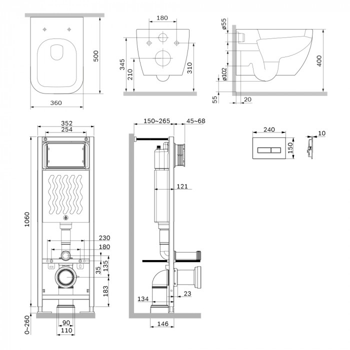 Рама выдерживает нагрузку до 500 кг. Внутреннее сечение профиля 3 мм обеспечивает надежность и долговечность конструкции. Подходит для унитазов любых размеров. Высокая прочность и износостойкость. Подключение воды сзади сверху. В комплекте механическая двухрежимная клавиша из ABS пластика в цвете глянцевый белый.