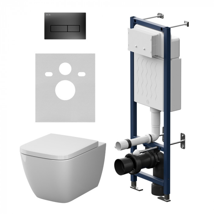 Рама выдерживает нагрузку до 500 кг. Внутреннее сечение профиля 3 мм обеспечивает надежность и долговечность конструкции. Подходит для унитазов любых размеров. Высокая прочность и износостойкость. Подключение воды сзади сверху. В комплекте механическая двухрежимная клавиша из ABS пластика в цвете черный матовый.