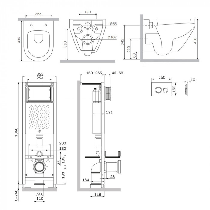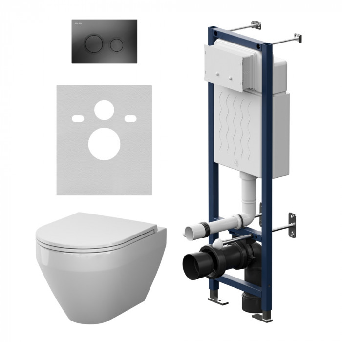 Рама выдерживает нагрузку до 500 кг. Внутреннее сечение профиля 3 мм обеспечивает надежность и долговечность конструкции. Подходит для унитазов любых размеров. Высокая прочность и износостойкость. Подключение воды сзади сверху. В комплекте механическая двухрежимная клавиша из ABS пластика в цвете матовый черный.