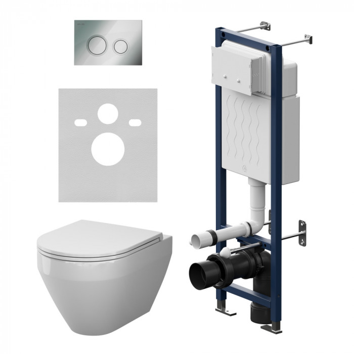 Рама выдерживает нагрузку до 500 кг. Внутреннее сечение профиля 3 мм обеспечивает надежность и долговечность конструкции. Подходит для унитазов любых размеров. Высокая прочность и износостойкость. Подключение воды сзади сверху. В комплекте механическая двухрежимная клавиша из ABS пластика в цвете глянцевый хром.