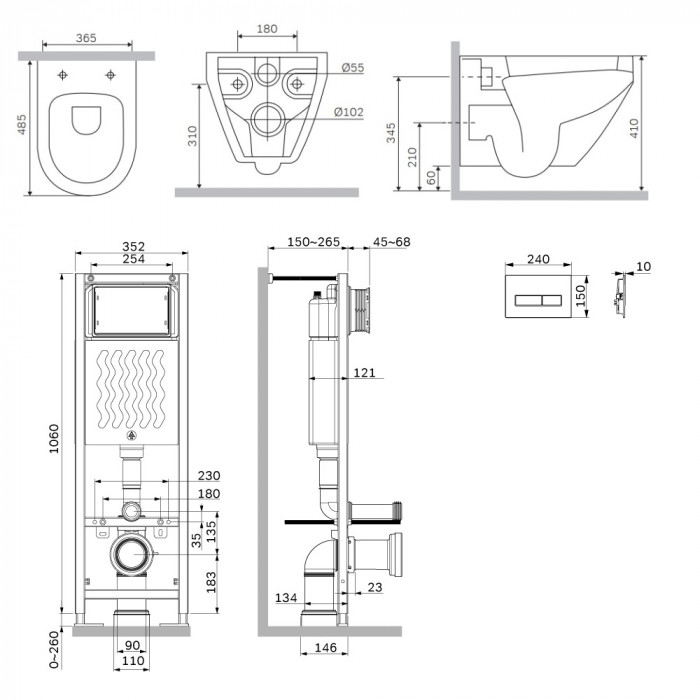 Рама выдерживает нагрузку до 500 кг. Внутреннее сечение профиля 3 мм обеспечивает надежность и долговечность конструкции. Подходит для унитазов любых размеров. Высокая прочность и износостойкость. Подключение воды сзади сверху. В комплекте механическая двухрежимная клавиша из ABS пластика в цвете матовый черный.