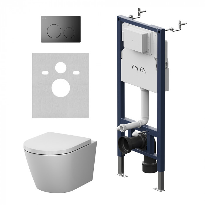 Инсталляция PrimeFit с подвесным унитазом Aquaspin и клавишей AM.PM X-Joy IS90138.851900 Черный Матовое