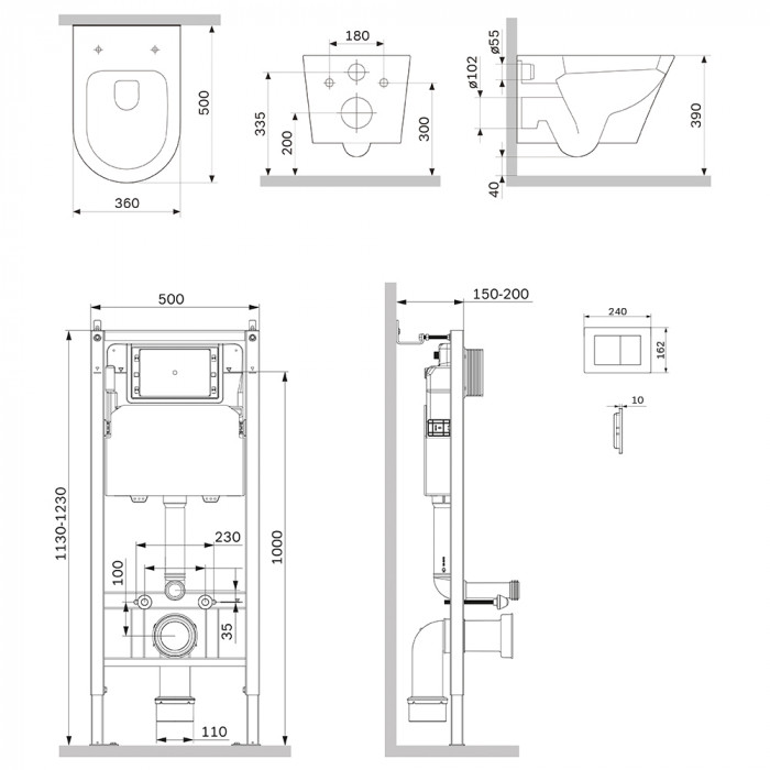 Рама выдерживает нагрузку до 500 кг. Внутреннее сечение профиля 3 мм обеспечивает надежность и долговечность конструкции. Подходит для унитазов любых размеров. Высокая прочность и износостойкость. Увеличенная толщина профиля, армированный шланг подачи воды, двойная прокладки слива и подачи воды. В комплекте механическая двухрежимная клавиша из ABS пластика в цвете черный матовый. Подключение воды сзади сверху.