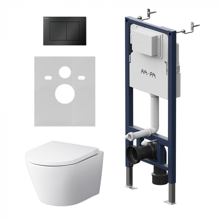 Инсталляция PrimeFit с подвесным унитазом Aquaspin и клавишей AM.PM X-Joy IS90238.851900 Чёрный Матовое IS90238.851900 Инсталл PrimeFit с клав S черн мат с подв унит X-Joy Aquaspin Инсталляция, клавиша, унитаз, крепления, инструкция Санфарфор 25 лет, система инсталляции 10 лет, клавиша, сиденье 2 года. 0,02 - 1,05 МПа 3/6 л Санфарфор, дюропласт, нержавеющая сталь, ABS-пластик Нержавеющая сталь Механический Торнадо Безободковый, Aquaspin Современный Германия Горизонтальный Смывной бачек, кнопка смыва, звукоизолирующая прокладка Полностью готовый к установке комплект: система инсталляции с клавишей, подвесной унитаз с сиденьем, включающий все необходимые крепления, патрубки, звукоизолирующую прокладку. Экономия пространства благодаря узкому бачку – 120 мм глубиной. Заливной клапан с низким уровнем шума - Класс II, согласно европейского стандарта EN 14124.