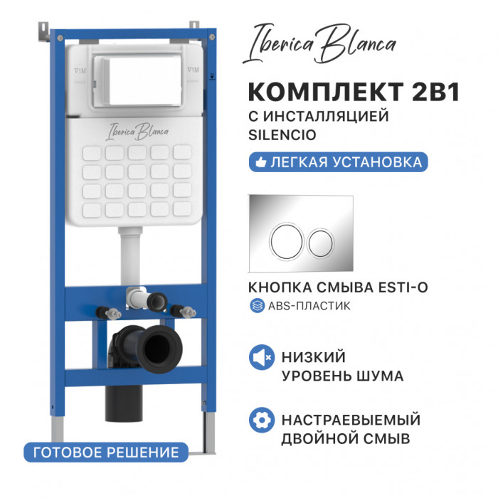 Комплект 2в1 IBERICA BLANCA инсталляция SILENCIO, кнопка смыва ESTI-O хром глянцевый (IB001.823)