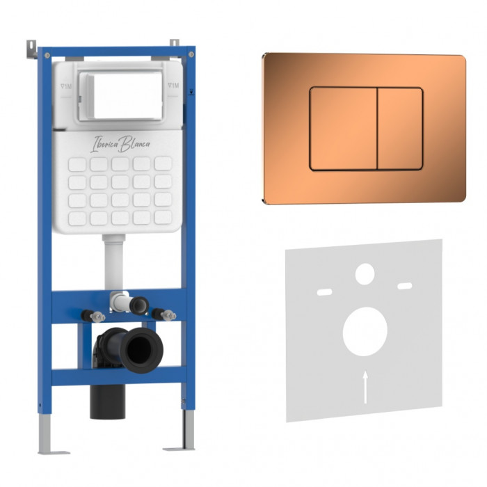 Комплект 2в1 IBERICA BLANCA инсталляция SILENCIO, кнопка смыва INOX-C розовое золото глянцевое (IB001.1141)