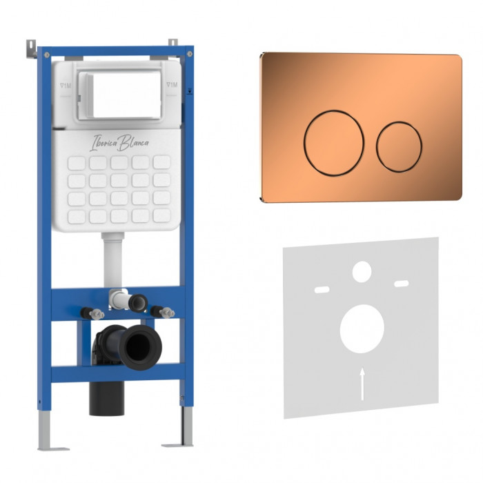 Комплект 2в1 IBERICA BLANCA инсталляция SILENCIO, кнопка смыва INOX-O розовое золото глянцевое (IB001.8171)