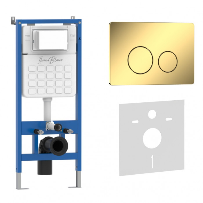 Комплект 2в1 IBERICA BLANCA инсталляция SILENCIO, кнопка смыва INOX-O золото глянцевое (IB001.816)