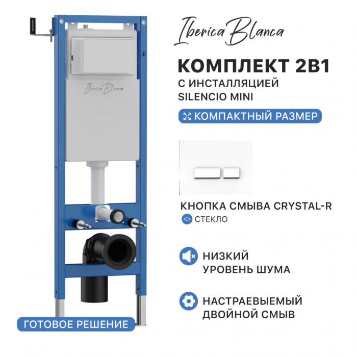 Комплект 2в1 IBERICA BLANCA инсталляция SILENCIO MINI, кнопка смыва CRYSTAL-R белый (IB.001M.221)
