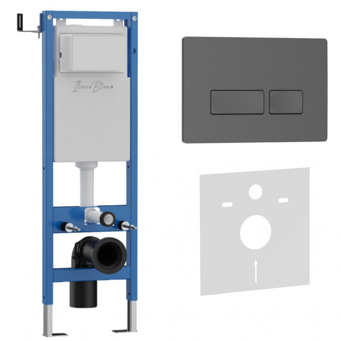 Комплект 2в1 IBERICA BLANCA инсталляция SILENCIO MINI, кнопка смыва ESTI-R серый матовый (IB.001M.218)