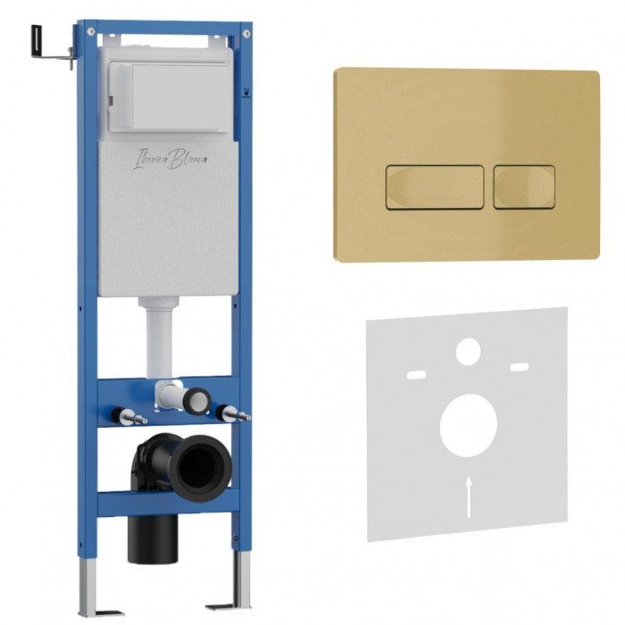Комплект 2в1 IBERICA BLANCA инсталляция SILENCIO MINI, кнопка смыва ESTI-R золото матовое (IB.001M.215)