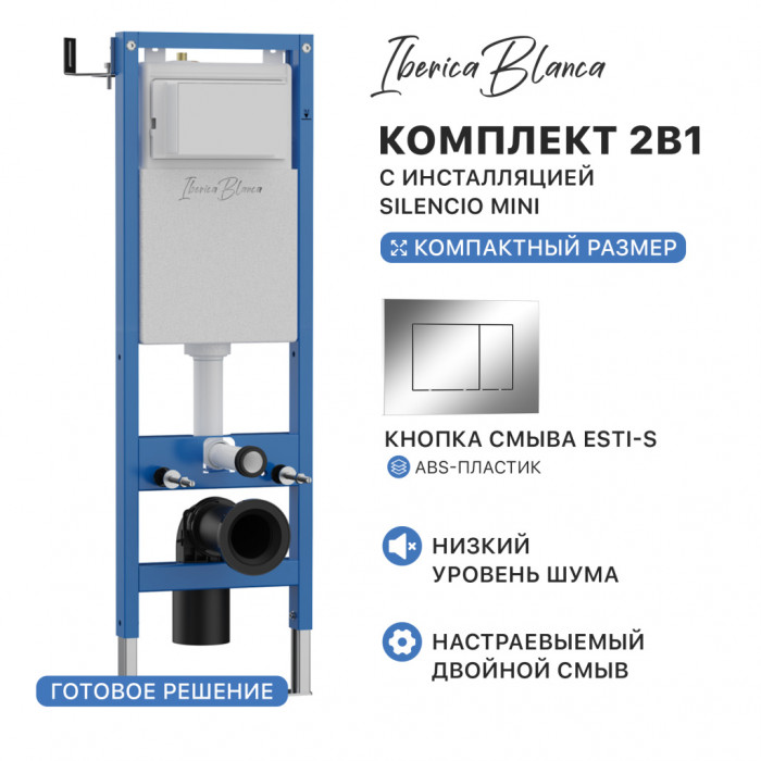 Комплект 2в1 IBERICA BLANCA инсталляция SILENCIO MINI, кнопка смыва ESTI-S хром глянцевый (IB.001M.852)
