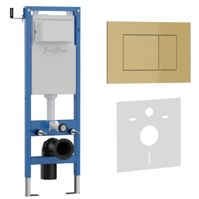 Комплект 2в1 IBERICA BLANCA инсталляция SILENCIO MINI, кнопка смыва ESTI-S золото матовое (IB.001M.854)