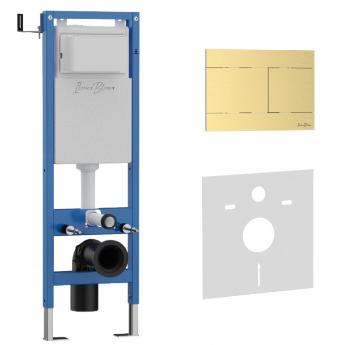 Комплект 2в1 IBERICA BLANCA инсталляция SILENCIO MINI, кнопка смыва INOX-R золото матовое (IB.001М.015.03)