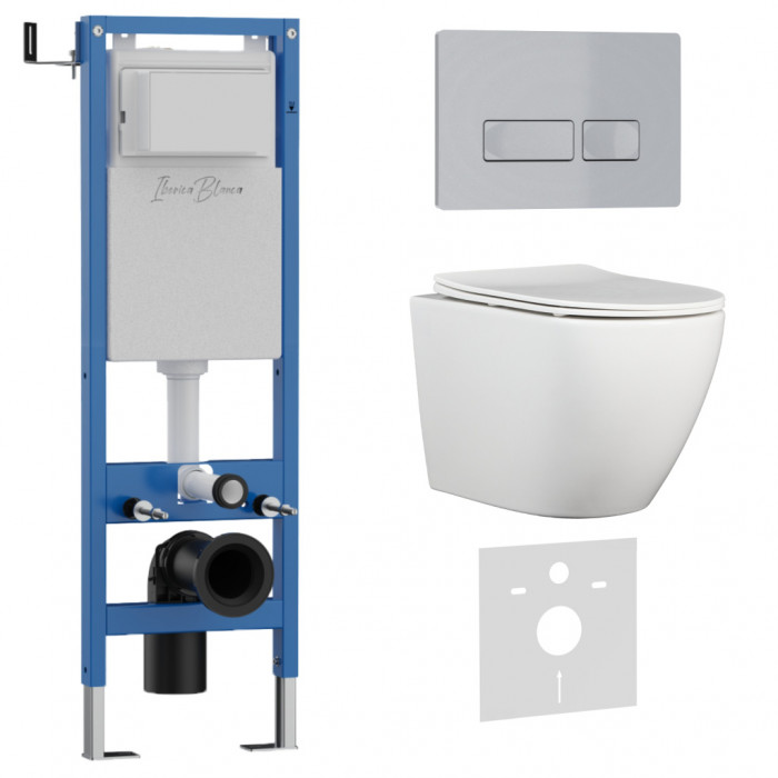 Комплект 3в1 IBERICA BLANCA инсталляция SILENCIO MINI, унитаз BILBAO ALTO белый, кнопка смыва ESTI-R хром матовый (IB.001M.BLA.234.214)