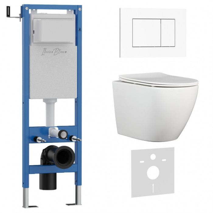 Комплект 3в1 IBERICA BLANCA инсталляция SILENCIO MINI, унитаз BILBAO ALTO белый, кнопка смыва ESTI-S белый глянцевый (IB.001M.BLA.234.855)