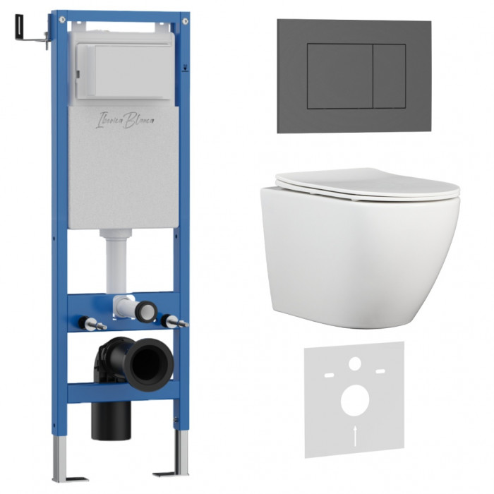 Комплект 3в1 IBERICA BLANCA инсталляция SILENCIO MINI, унитаз BILBAO ALTO белый, кнопка смыва ESTI-S серый матовый (IB.001M.BLA.234.856)