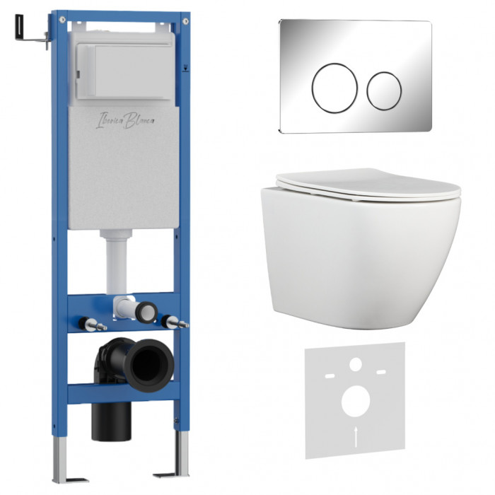Комплект 3в1 IBERICA BLANCA инсталляция SILENCIO MINI, унитаз BILBAO ALTO белый, кнопка смыва INOX-O хром глянцевый (IB.001M.BLA.234.8131)