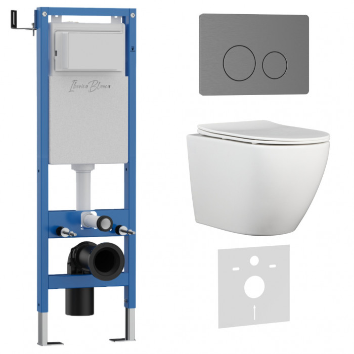 Комплект 3в1 IBERICA BLANCA инсталляция SILENCIO MINI, унитаз BILBAO ALTO белый, кнопка смыва INOX-О вороненая сталь (IB.001M.BLA.234.8180)