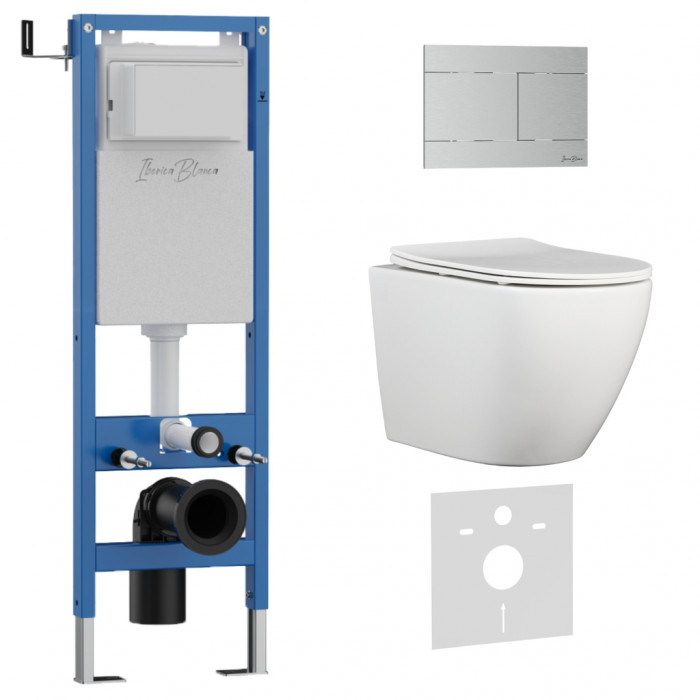 Комплект 3в1 IBERICA BLANCA инсталляция SILENCIO MINI, унитаз BILBAO ALTO белый, кнопка смыва INOX-R хром матовый (IB.001M.BLA.234.1501)