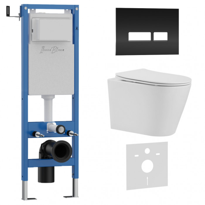 Комплект 3в1 IBERICA BLANCA инсталляция SILENCIO MINI, унитаз BURGOS ALTO белый, кнопка смыва CRYSTAL-R черный глянцевый (IB.001M.BRA.234.2211)