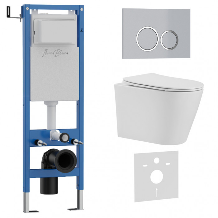 Комплект 3в1 IBERICA BLANCA инсталляция SILENCIO MINI, унитаз BURGOS ALTO белый, кнопка смыва ESTI-O хром матовый (IB.001M.BRA.234.824)
