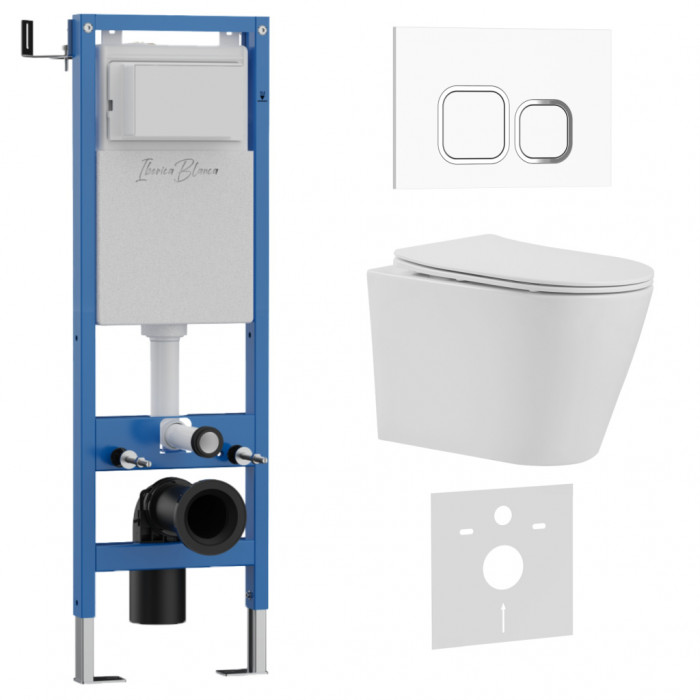 Комплект 3в1 IBERICA BLANCA инсталляция SILENCIO MINI, унитаз BURGOS ALTO белый, кнопка смыва ESTI-Q белый глянцевый (IB.001M.BRA.234.831)