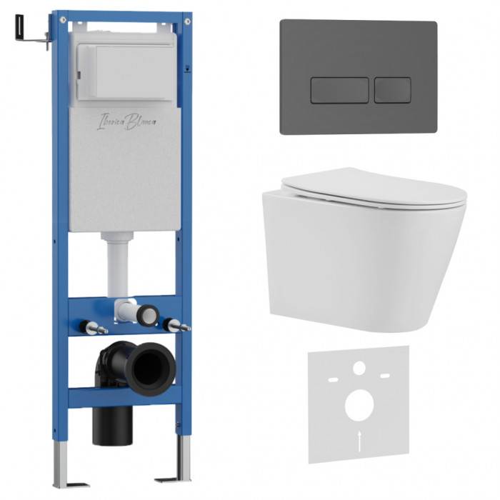 Комплект 3в1 IBERICA BLANCA инсталляция SILENCIO MINI, унитаз BURGOS ALTO белый, кнопка смыва ESTI-R серый матовый (IB.001M.BRA.234.218)