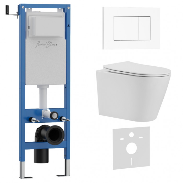 Комплект 3в1 IBERICA BLANCA инсталляция SILENCIO MINI, унитаз BURGOS ALTO белый, кнопка смыва ESTI-S белый глянцевый (IB.001M.BRA.234.855)