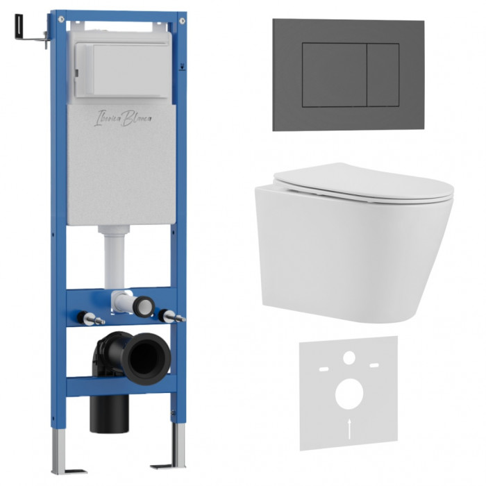 Комплект 3в1 IBERICA BLANCA инсталляция SILENCIO MINI, унитаз BURGOS ALTO белый, кнопка смыва ESTI-S серый матовый (IB.001M.BRA.234.856)