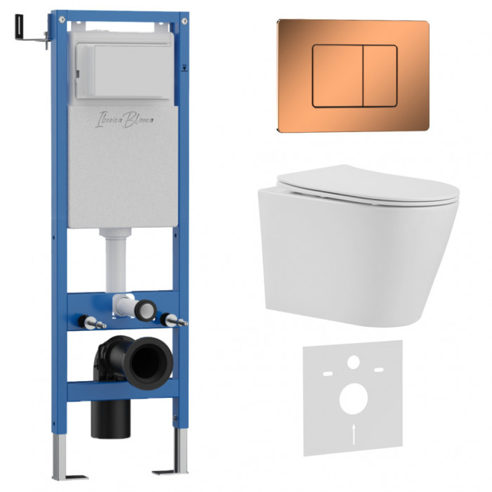 Комплект 3в1 IBERICA BLANCA инсталляция SILENCIO MINI, унитаз BURGOS ALTO белый, кнопка смыва INOX-C розовое золото глянцевое (IB.001M.BRA.234.1141)