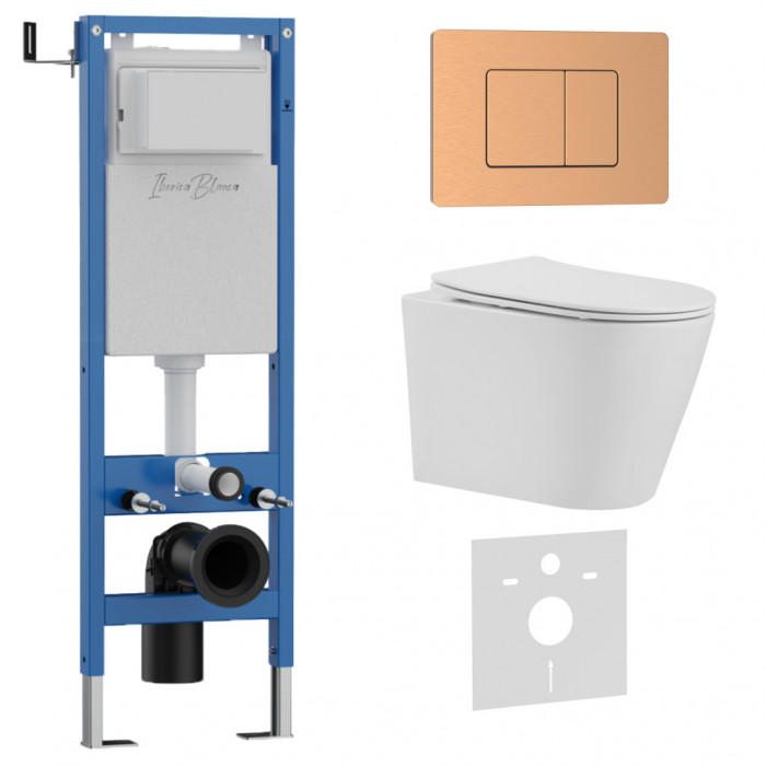 Комплект 3в1 IBERICA BLANCA инсталляция SILENCIO MINI, унитаз BURGOS ALTO белый, кнопка смыва INOX-C розовое золото матовое (IB.001M.BRA.234.1172)