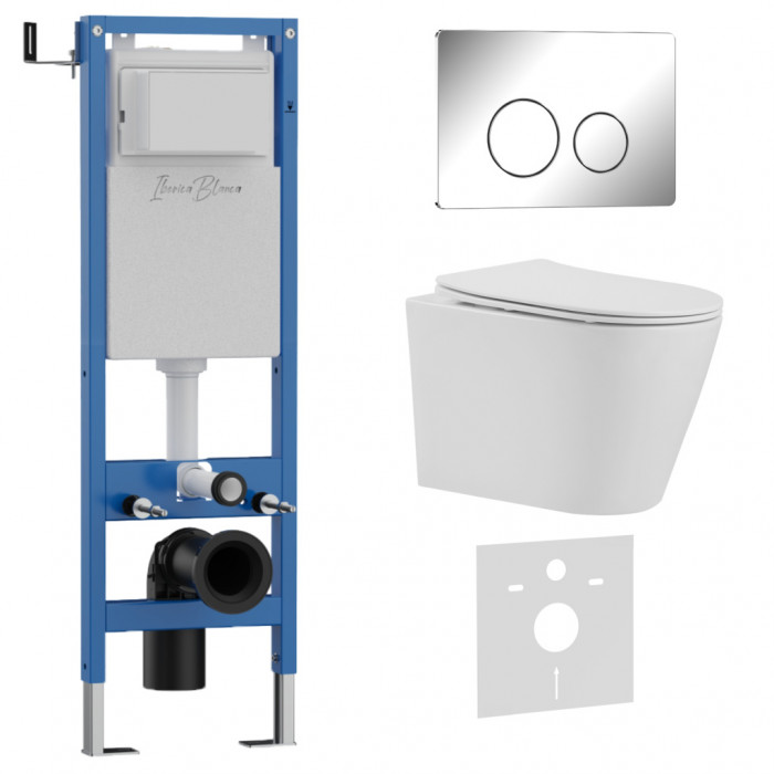Комплект 3в1 IBERICA BLANCA инсталляция SILENCIO MINI, унитаз BURGOS ALTO белый, кнопка смыва INOX-O хром глянцевый (IB.001M.BRA.234.8131)