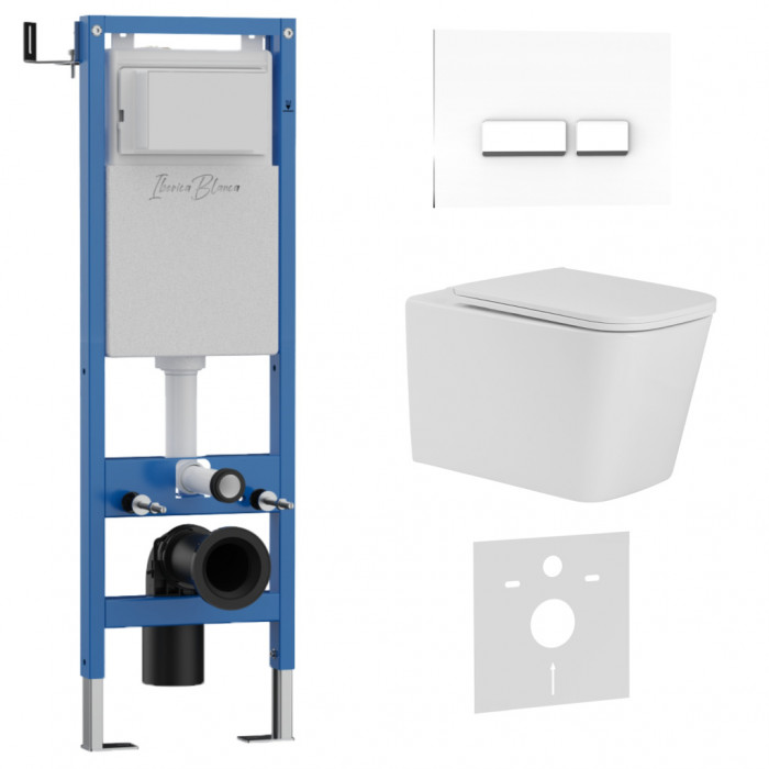 Комплект 3в1 IBERICA BLANCA инсталляция SILENCIO MINI, унитаз TOLEDO ALTO белый, кнопка смыва CRYSTAL-R белый глянцевый (IB.001M.TLA.234.2210)