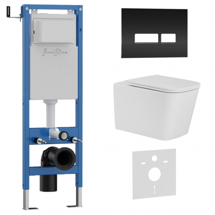 Комплект 3в1 IBERICA BLANCA инсталляция SILENCIO MINI, унитаз TOLEDO ALTO белый, кнопка смыва CRYSTAL-R черный глянцевый (IB.001M.TLA.234.2211)