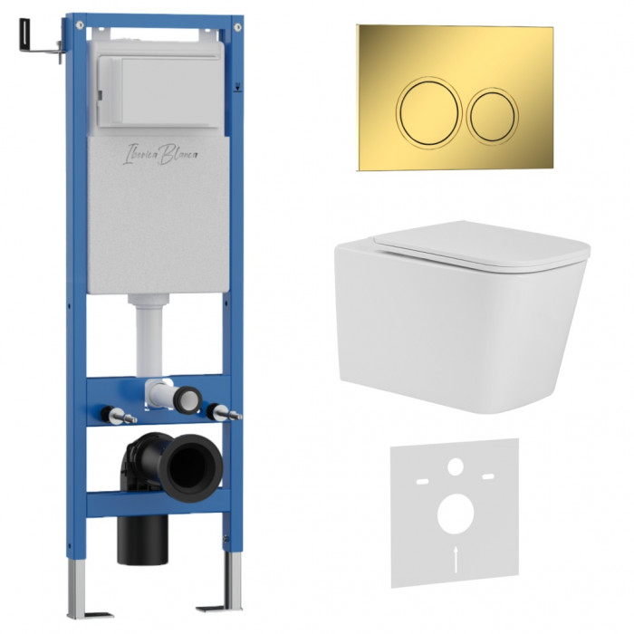 Комплект 3в1 IBERICA BLANCA инсталляция SILENCIO MINI, унитаз TOLEDO ALTO белый, кнопка смыва ESTI-O золото глянцевое (IB.001M.TLA.234.826)